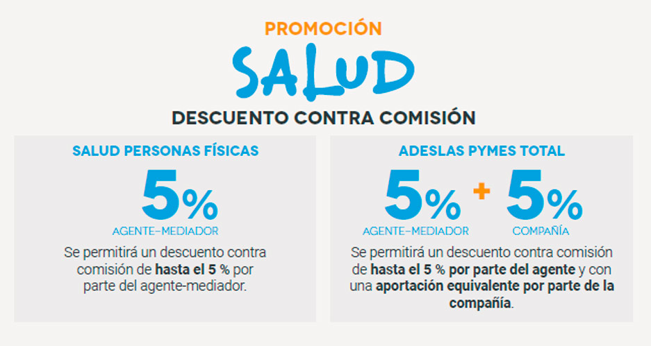 Productos en campaña: CÓDIGO DE CAMPAÑA 3650 – Productos plurianuales: Adeslas Plena Total (1776), Adeslas Plena Total Seniors (1781) y Adeslas Plena Total Vital (1787).  CÓDIGO DE CAMPAÑA 3651 – Productos de renovación anual: Adeslas Plena (1773), Adeslas Plena Plus (1774), Adeslas Plena Vital (1775), Adeslas Seniors (1777), Adeslas Plena Extra 150 (1772), Adeslas Plena Extra 240 (1771), Adeslas Plena Extra 1M (1770), Adeslas Negocios NIF (1779) y Adeslas Extra Negocios NIF (1780). CÓDIGO DE CAMPAÑA 3652 – Adeslas Go (1778). CÓDIGO DE CAMPAÑA 3653 – Adeslas Pymes Total (Únicamente podrá beneficiarse del descuento contra comisión)