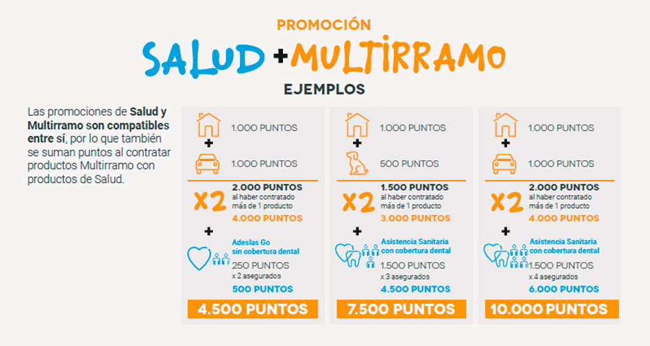 Si un mismo tomador contrata 2 o más seguros en promoción en el periodo de campaña, obtendrá el doble de puntos.